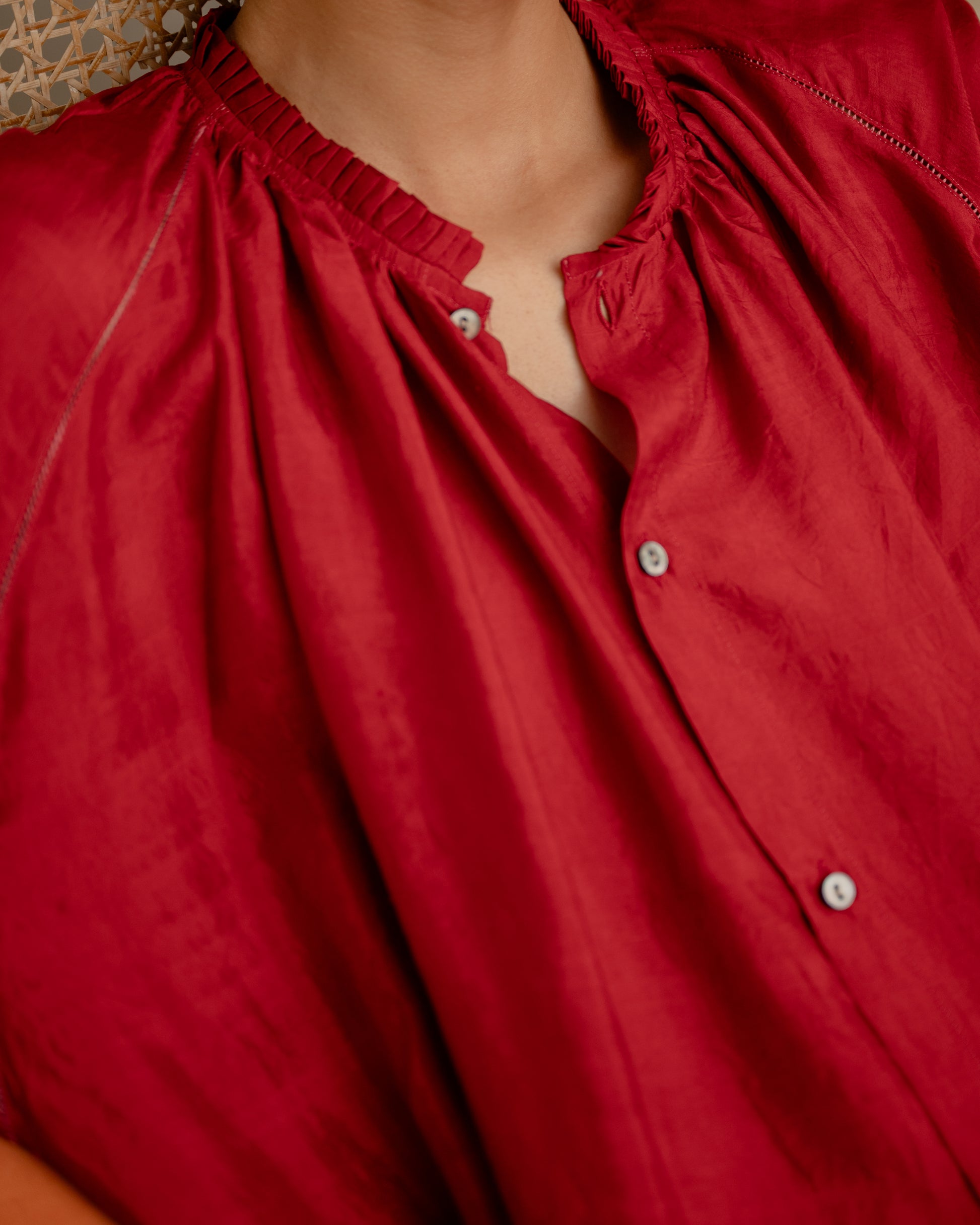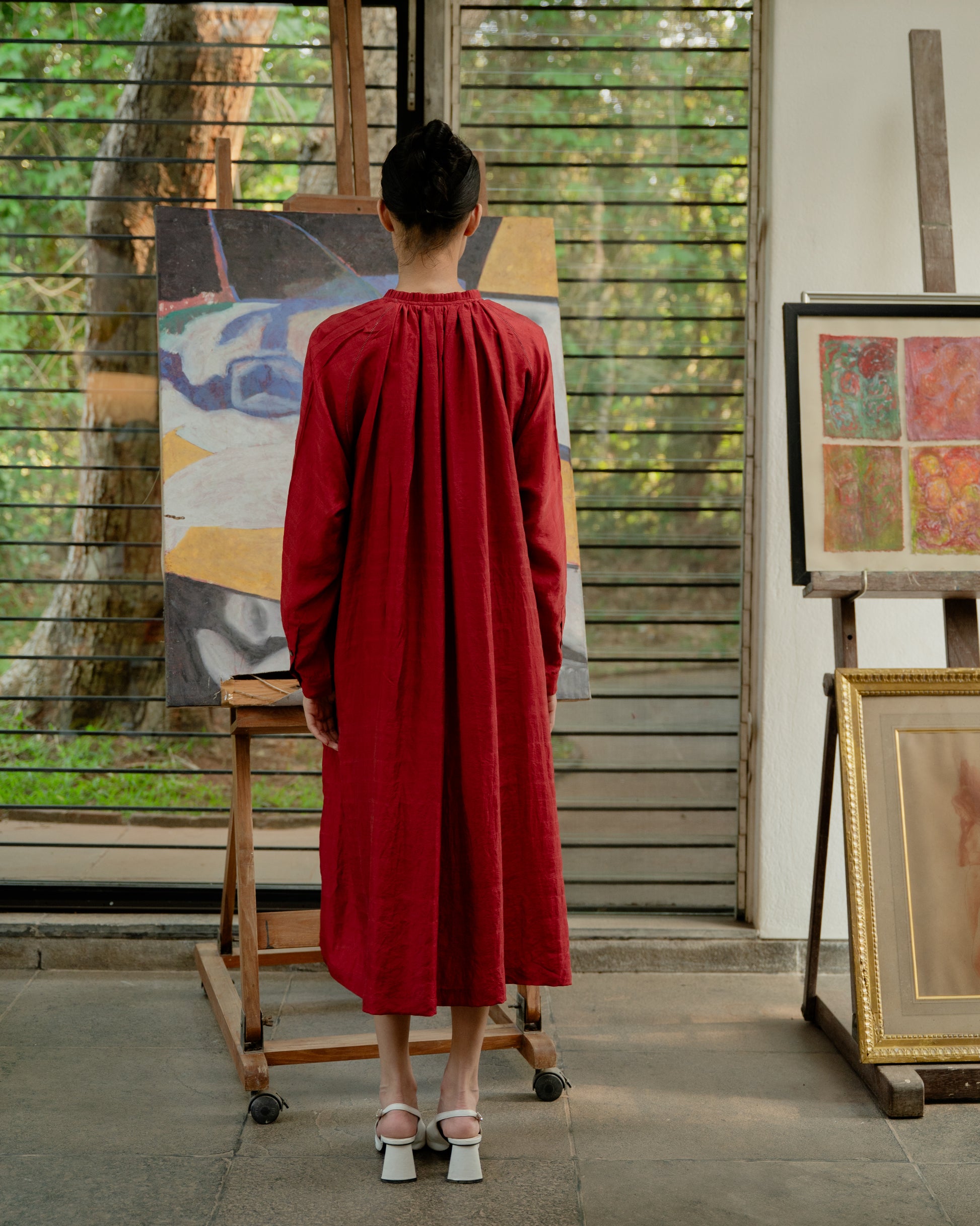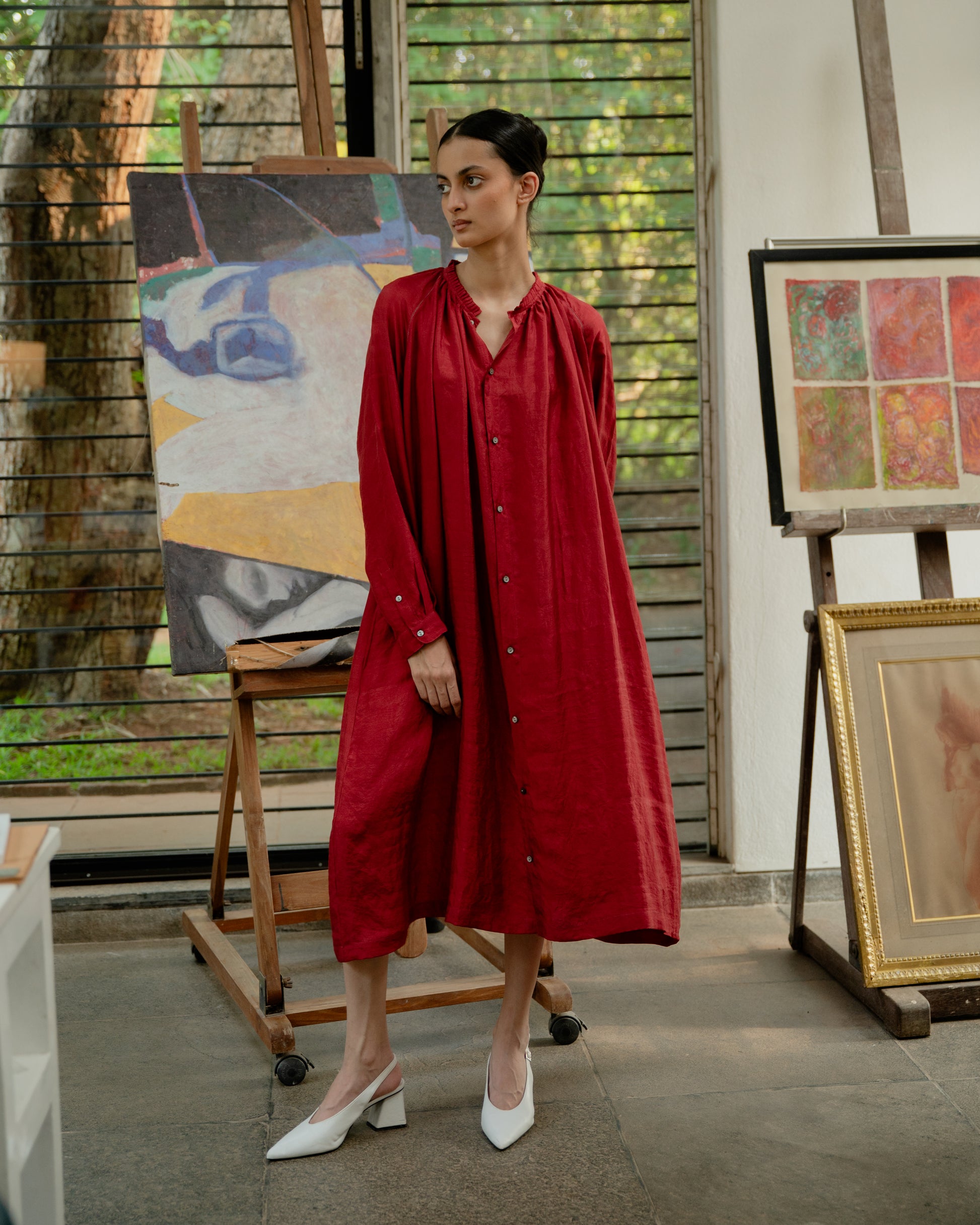 Raglan sleeve dress in relaxed fit. This garment is manufactured using fine and delicate materials, carefully crafted by our artisans across India.