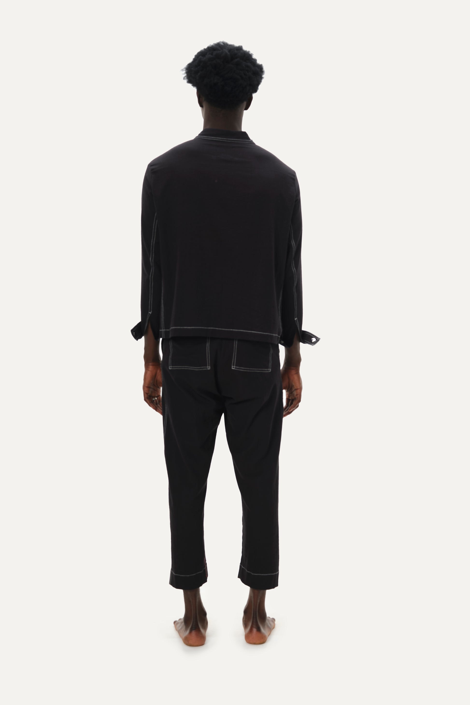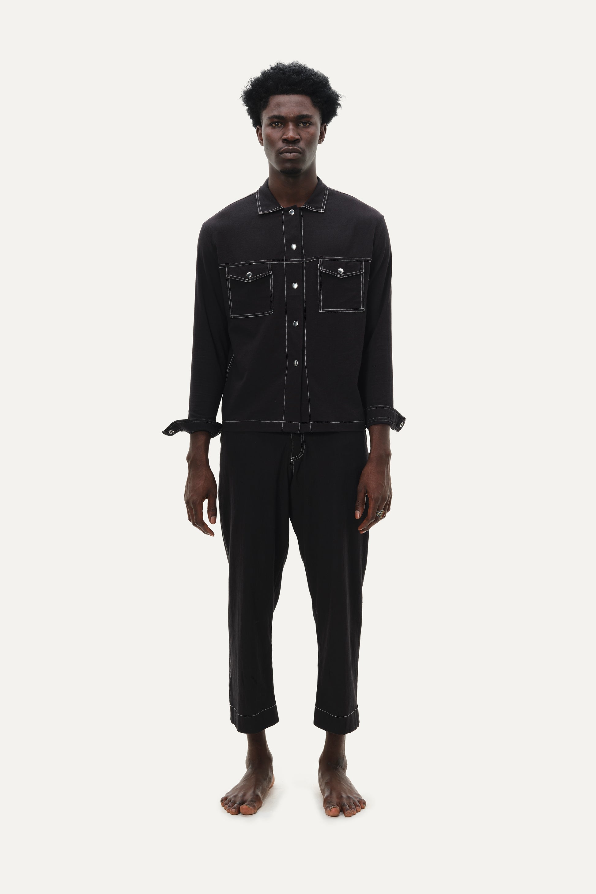 Chalkline detailed button-down shirt with patch pocket. Paired here with black pleated front pants with slant pockets in a relaxed fit. This garment is manufactured using fine and delicate materials, carefully crafted by our artisans across India.- Crushed Cotton- Made in PondicherryFor any customization and inquiries, please contact or WhatsApp at +91 9655.488.288