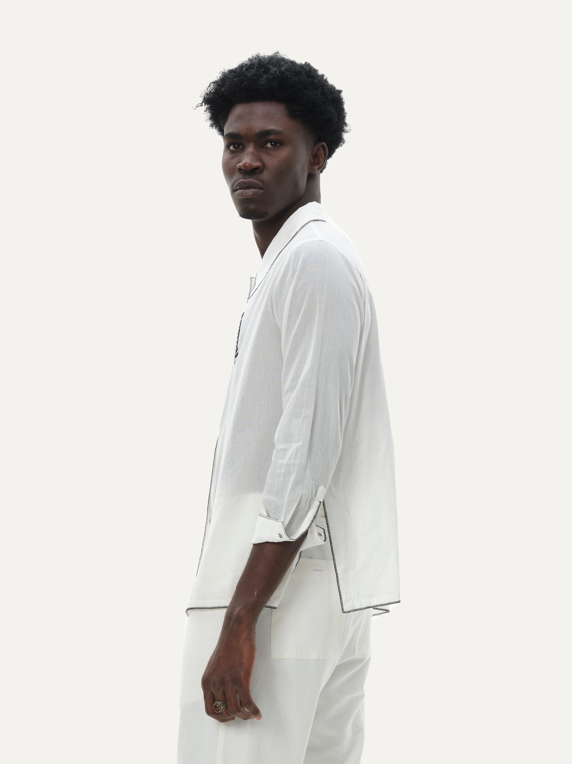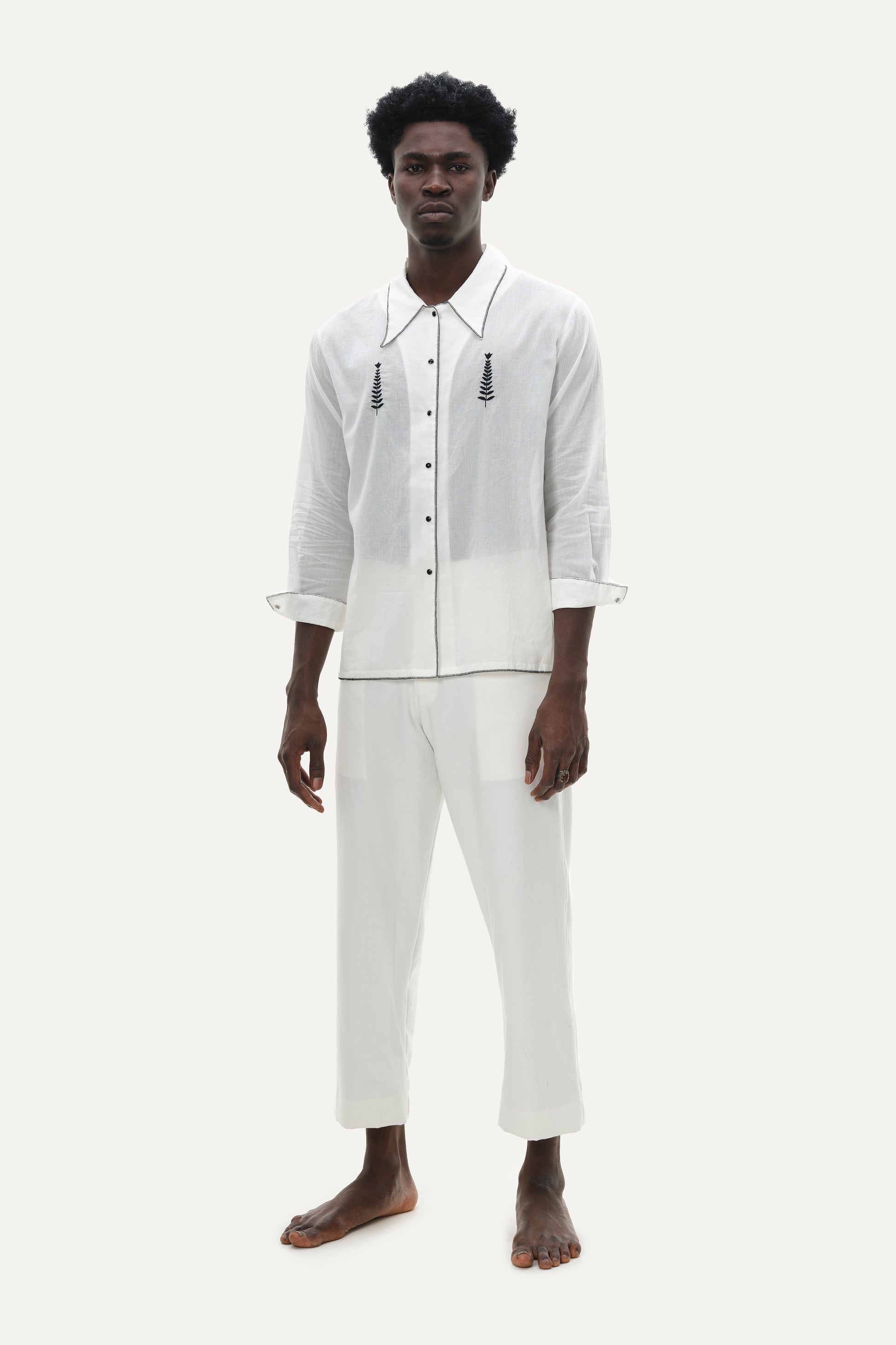 Full sleeved button-down shirt with hand embroidered front and buttonhole hem detail. This garment is manufactured using fine and delicate materials, carefully crafted by our artisans across India.- 100% Cotton Voil- Made in PondicherryFor any customization and inquiries, please contact or WhatsApp at +91 9655.488.288