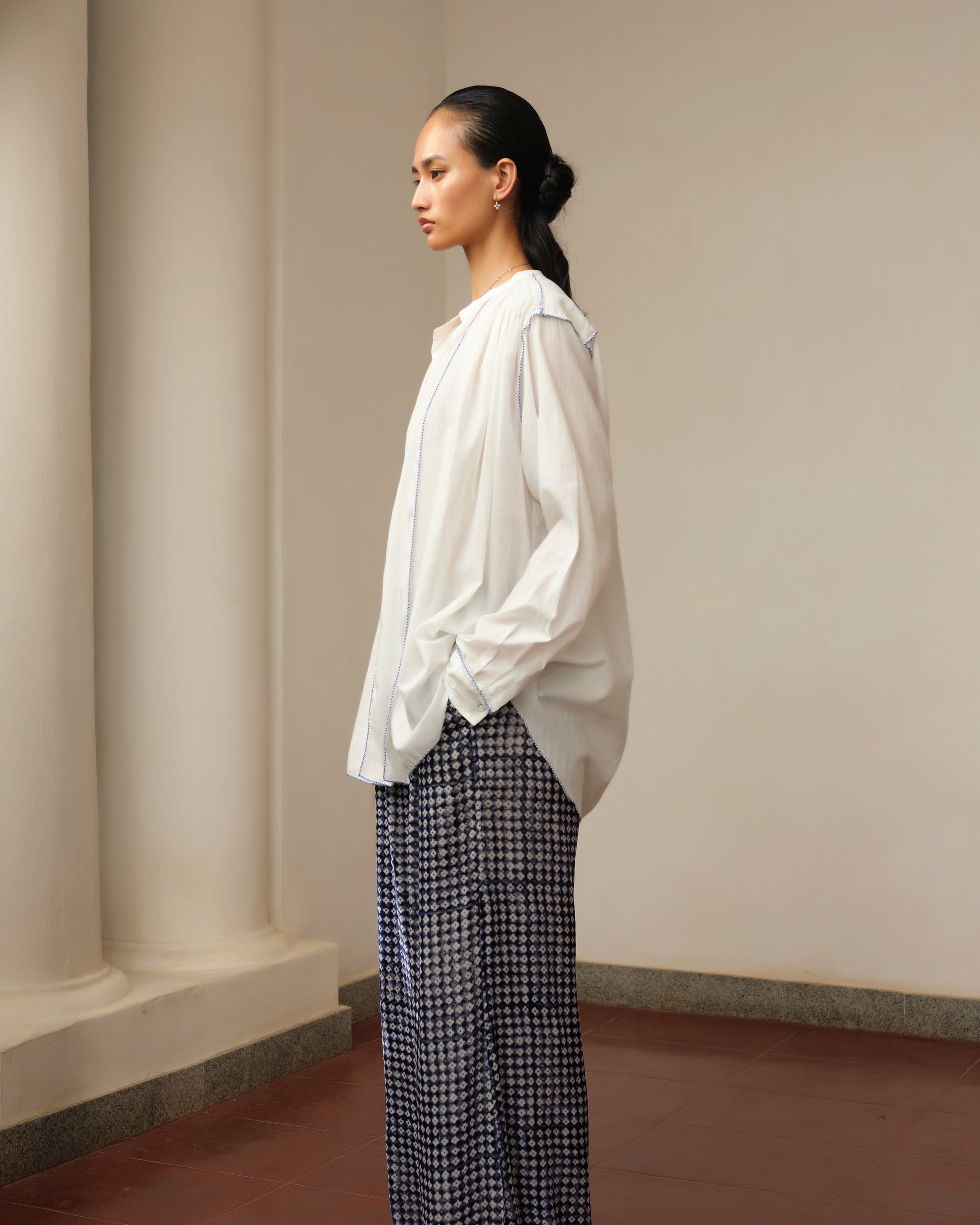 Cotton Voile Shirt with Cross stitch details