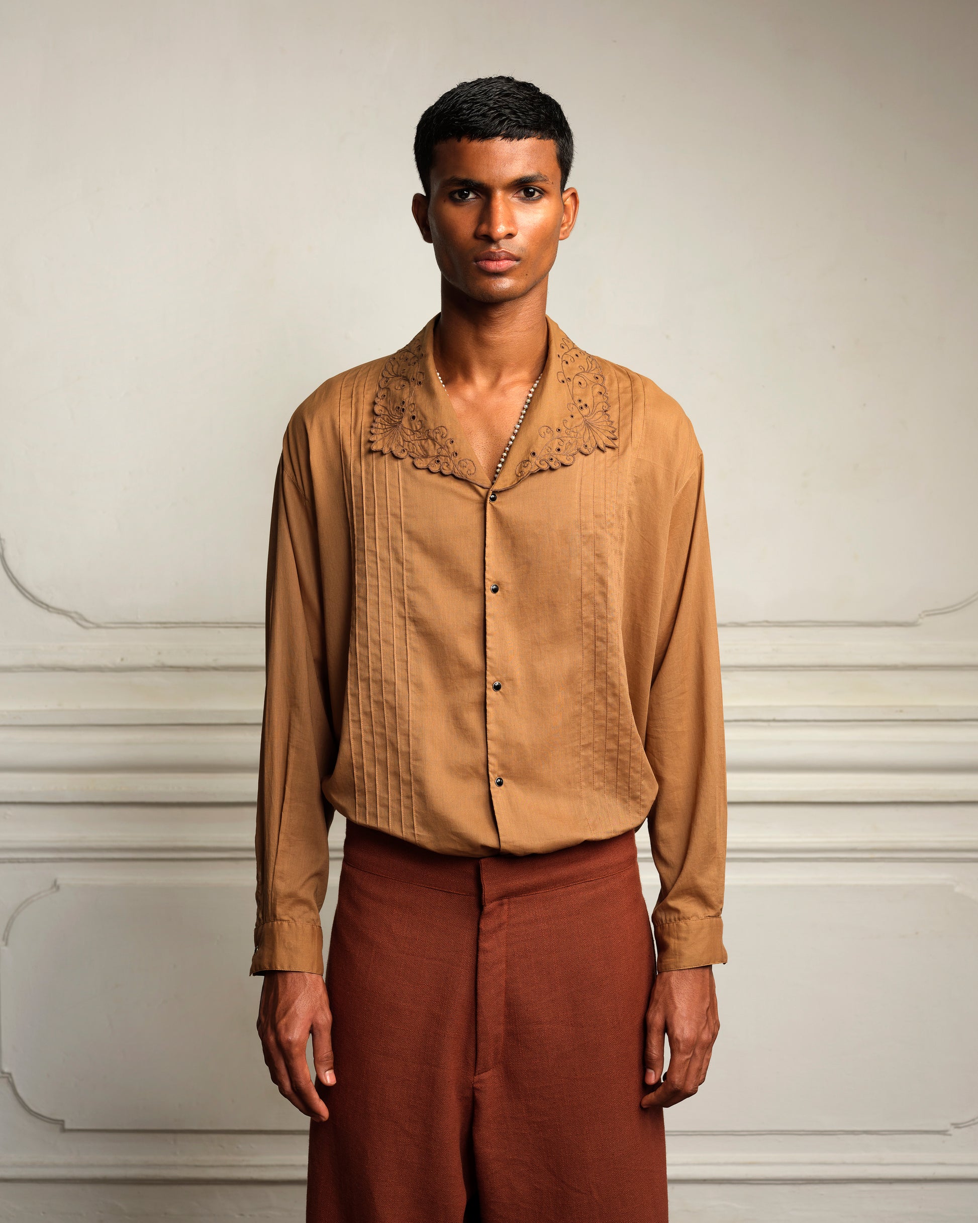 Cotton Shirt with Hand Embroidered Lace Collar