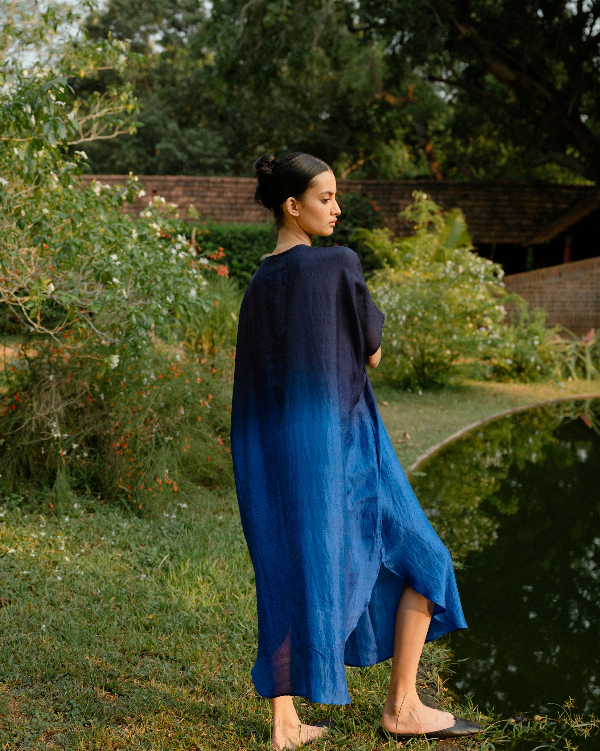Dressy Kaftan dress in Handwoven Mulberry Silk. This garment is manufactured using fine and delicate materials, carefully crafted by our artisans across India.