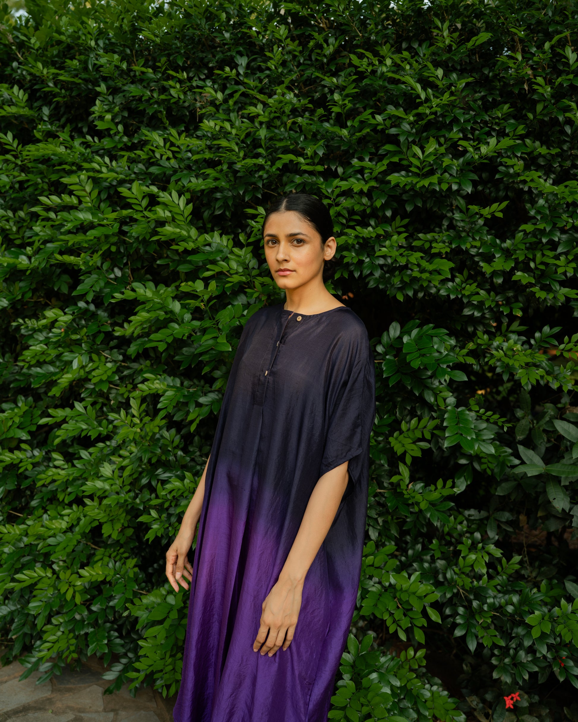 Dressy Kaftan dress in Handwoven Mulberry Silk. This garment is manufactured using fine and delicate materials, carefully crafted by our artisans across India.