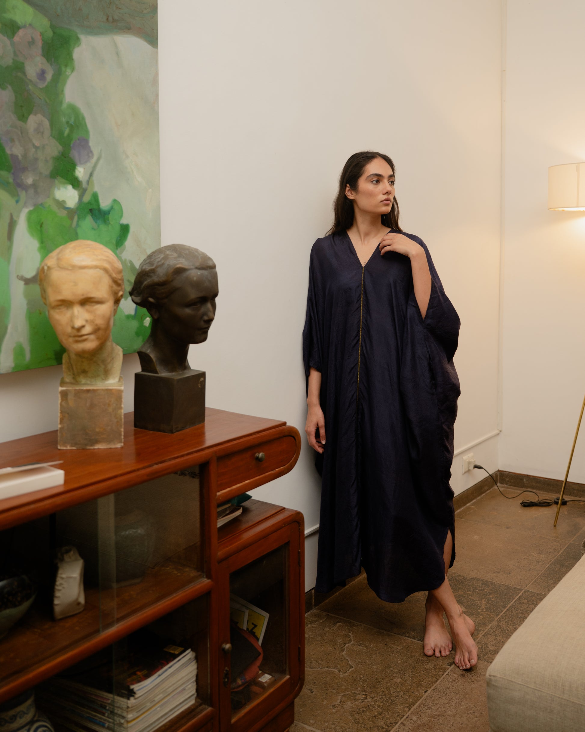 Dressy Kaftan in Handwoven Mulberry Silk. This garment is manufactured using fine and delicate materials, carefully crafted by our artisans across India.