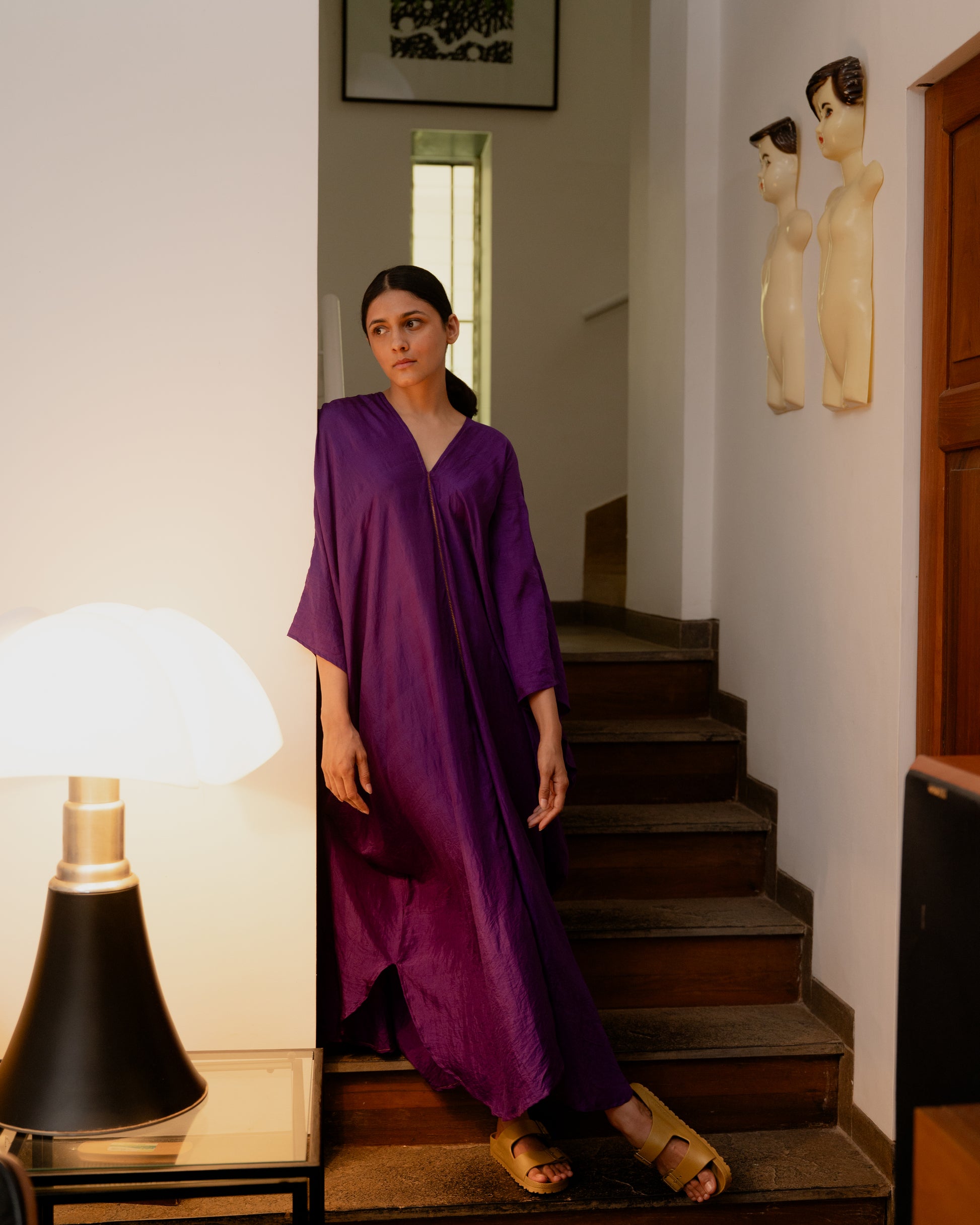 Dressy Kaftan in Handwoven Mulberry Silk. This garment is manufactured using fine and delicate materials, carefully crafted by our artisans across India.