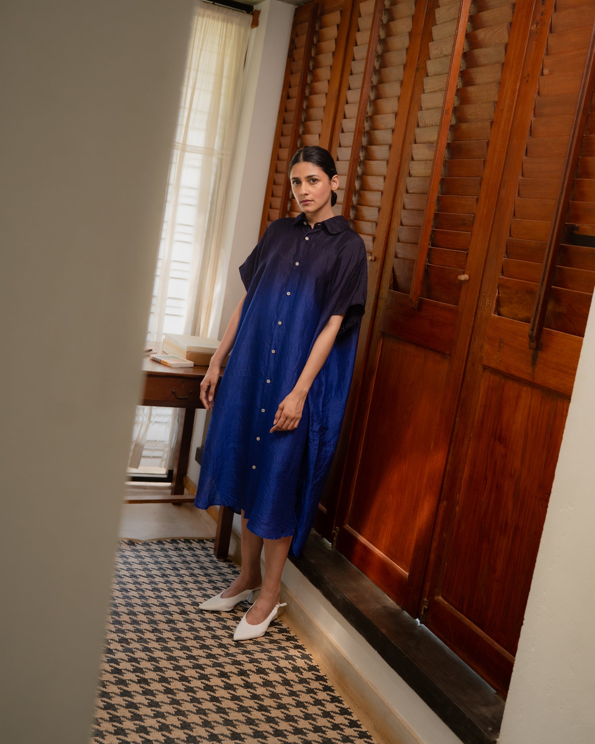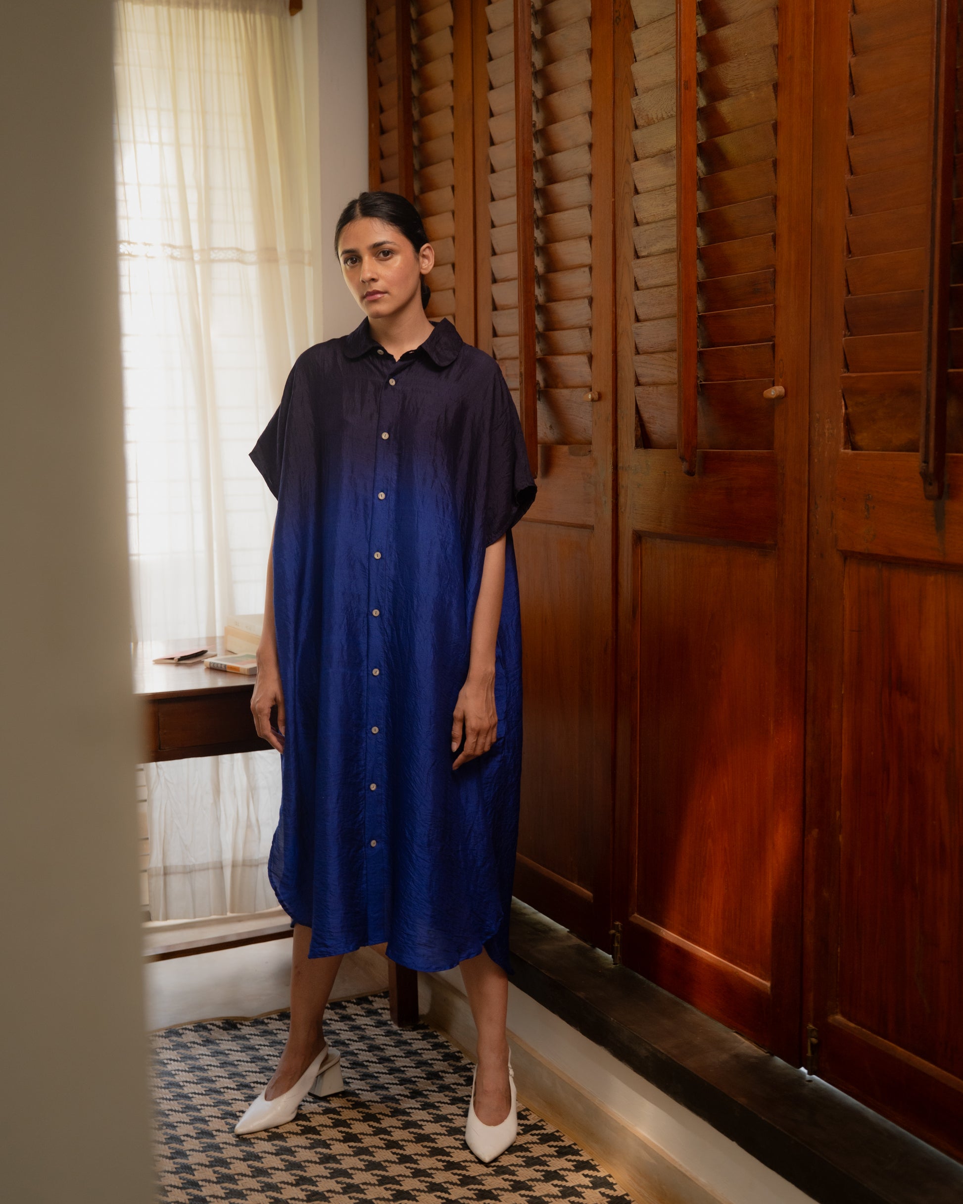 Easy shirt dress in Handwoven Mulberry Silk. This garment is manufactured using fine and delicate materials, carefully crafted by our artisans across India.