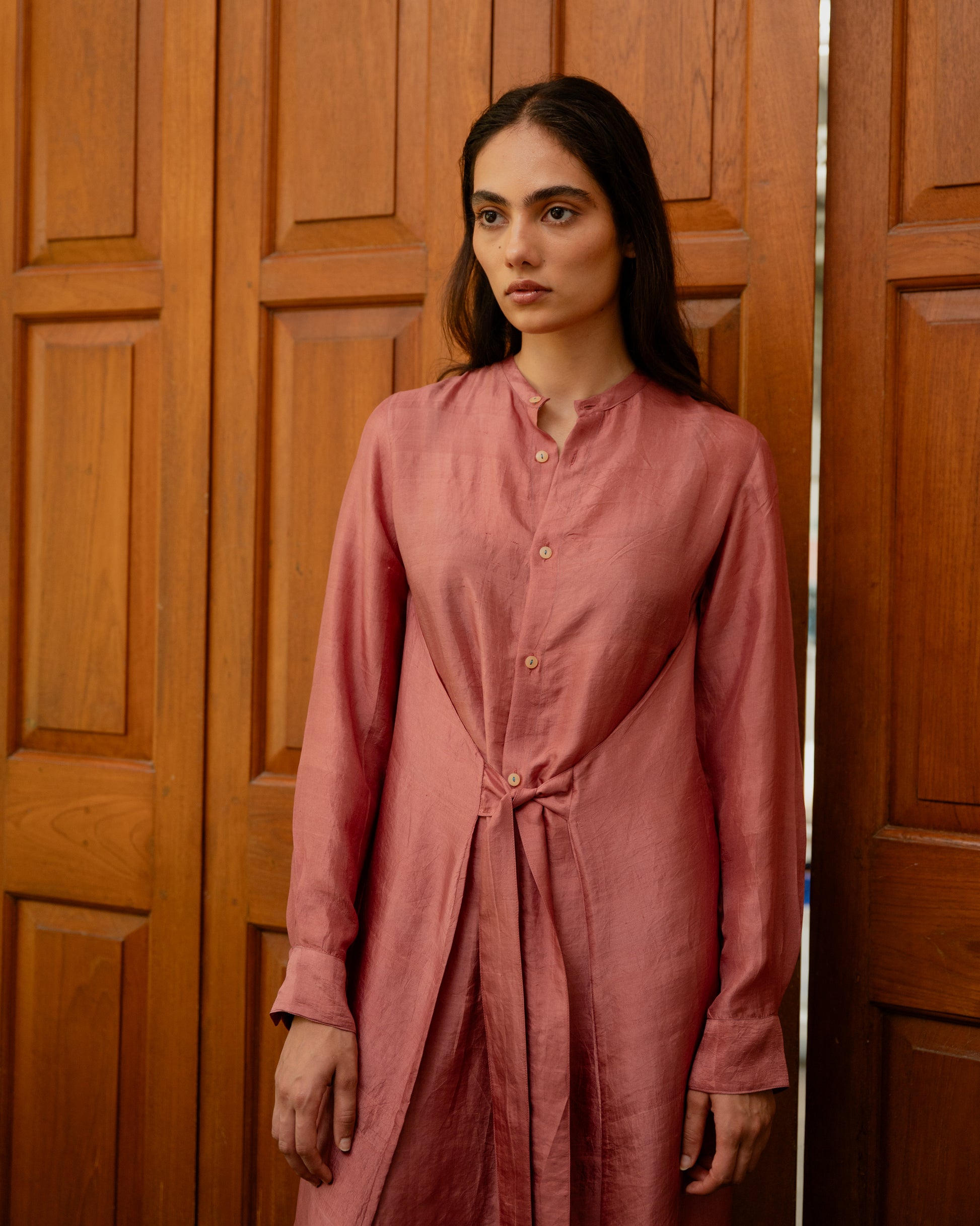 Japanese inspired tie-up dress in Handwoven Mulberry Silk. This garment is manufactured using fine and delicate materials, carefully crafted by our artisans across India.