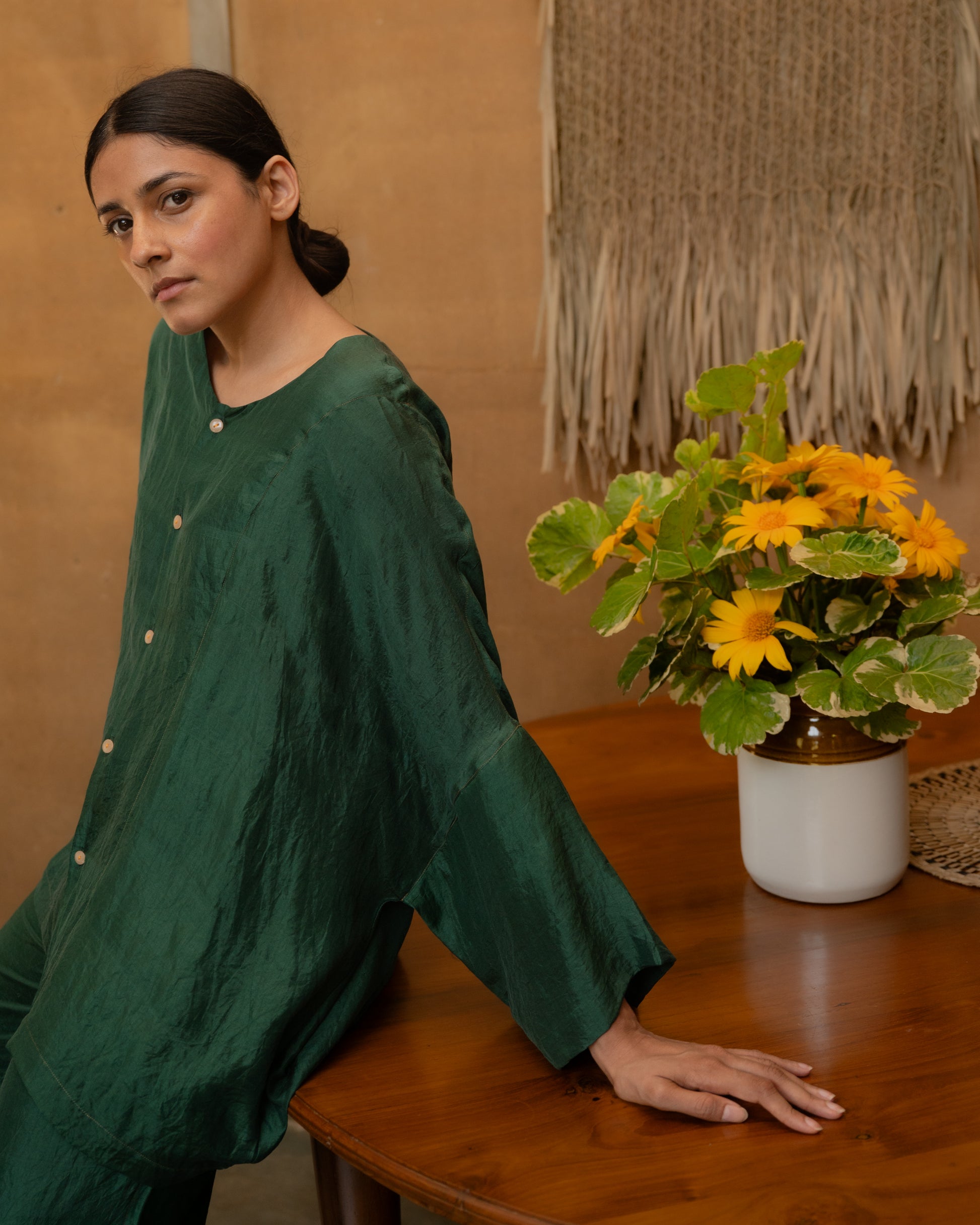 An easy Silk shirt with front button details. Made with Handwoven Mulberry silk.